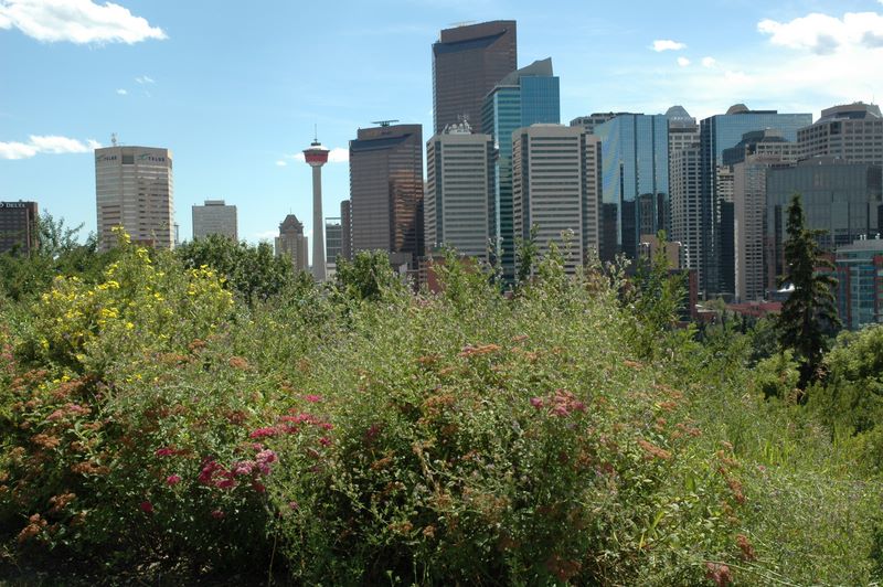 My flight arrived in Calgary on time or even a bit early (~12:15 PM). I quickly got my luggage, cleared customs, and went to wait for my rental car. If I had not had Avis Preferred service, I might have still been waiting for the car when Mom arrived; as it was, I was out of the airport by 1:15 or so - not bad at all. I went to a nearby Safeway (thanks to Google Maps) and picked up water and snacks, drove around a bit, finding some nice views overlooking downtown Calgary and the Bow River. I went to 4:30 Mass at Our Lady of Grace Italian Catholic Church, about 15 minutes from the airport and 3 blocks from the Holiday Inn where we would be staying the last night of the trip! I couldn’t reach Mom on her cell phone after Mass, so I went back to the airport, and found her on my second circuit (on the third I would’ve parked and looked for her). So, the most difficult part of the trip - getting together - was done.