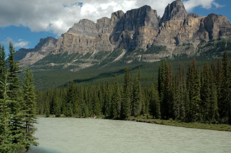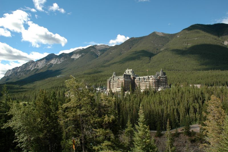 Driving on down Tunnel Mountain Drive, we got to a busy turn - “Surprise Corner”. Many people were crossing the road to an observation deck where you could see the Bow River, Bow Falls, and particularly the Banff Springs Hotel - an absolutely huge Banff landmark. If you walked along the road you could get a better view of Bow Falls and the rapids/cascades before and after it.