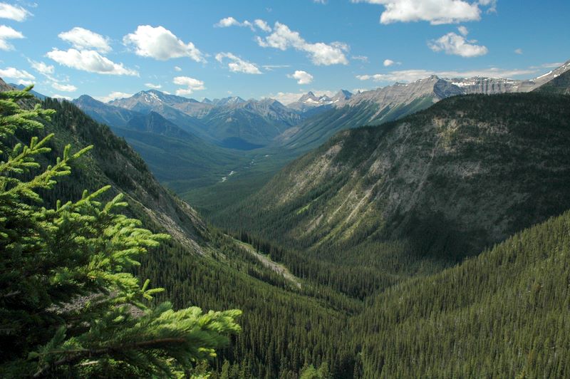 We headed back east on the Trans-Canada Highway and back to Castle Junction, where we took Rt. 93 southwest through Kootenay National Park. This only took a couple of hours, and we stopped for lunch at Back Country Jack's Museum Restaurant in Radium Hot Springs. We took our time with lunch so I could have slightly better photo light going east. Places we stopped going back included the impressive “entrance” through a narrow pass above Radium Hot Springs, the aptly named Redwall Fault (yes, it’s very red), Olive Lake - a nice peaceful place with a short boardwalk and spring-fed, crystal clear water, Kootenay Valley Viewpoint where you could see for miles and miles, Hector Gorge, and Numa Falls. The only place I took more than a brief walk was at the Paint Pots (a 1.2 mile round trip). This is a place where the Indians used to come to get red and yellow pigment, and ochre used to be mined here. I also wanted to visit nearby Marble Canyon, but it was closed; one of my books suggested it had been closed since widespread fires several years ago. There was a large section of dead trees in the northeastern part of the park.