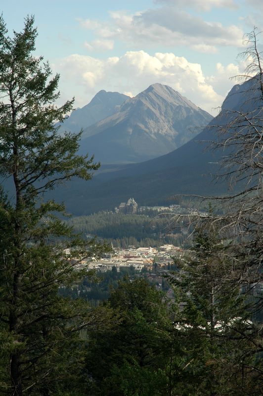 One of my goals NOT shared by Mom was to do some hiking most days. Tunnel Mountain was described as a mountain that any “reasonably fit” person could climb in the Rockies, with an elevation gain of 300 meters/975 ft. Leaving Mom at the hotel, I headed out - and promptly wondered about my fitness level as the climb seemed really strenuous right away! The first part was the steepest, plus I guess being at 4000/5000 feet made a difference. I felt better when I was almost back to the bottom and I encountered what seemed to be mother, son, and grandmother coming up. The mother (probably younger than me) was very red in the face and asked me, “Are we almost to the top?” I had to tell her no…but I did reassure her it would get easier. The views from the top were worth it.