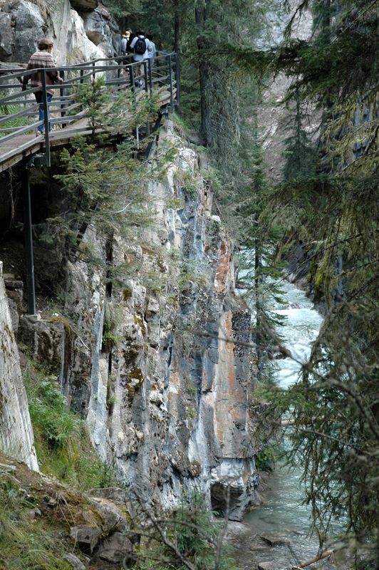 We made some stops for scenic mountain views, but my next goal was to get to Johnston Canyon before it got too crowded. The walk to the Lower Falls (l mile round trip) is very, very popular; many people go on (like I did) to the Upper Falls (an extra 2 miles) or even further to the Ink Pots. It was a beautiful place, and we did beat a lot of the crowds - by the time I got back from the Upper Falls, cars had overflowed the parking lot and were parked on the roadside. Mom had time to take a leisurely walk to the Lower Falls and back, plus get coffee at the nearby coffee shop/restaurant before I returned.