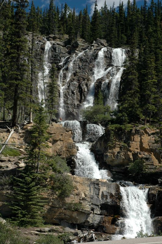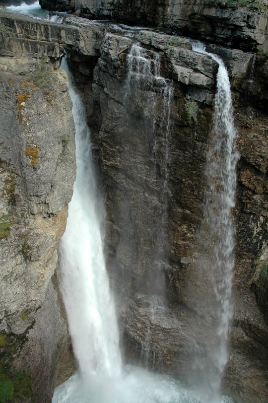 After leaving the Spiral Tunnels overlook, we went to Yoho Valley road and drove to Takakkaw Falls. Takakkaw is an Indian word meaning “magnificent” - and it was well named. Takakkaw is one of the highest waterfalls in Canada, and the water just shoots off the side of the mountain. The road to get to it is also impressive, especially the back-to-back switchbacks which require larger vehicles like RVs to back up to round the corner.