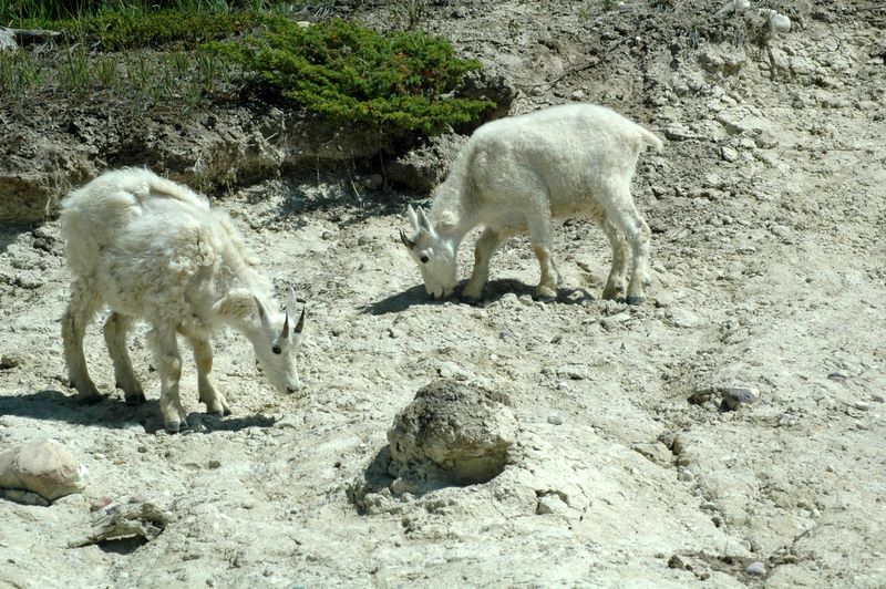 Probably the highlight of our first afternoon in Jasper National Park was the mountain goats we saw at a mineral lick along the road. We got the impression they were probably common there…but we passed the same way three more times and didn’t see them again. Mountain goats are less common than bighorn sheep, so we were glad to have seen them.