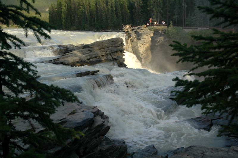 Going back to Jasper, we decided to see if this was a good time to visit Athabasca Falls (which I had been told was a “must see”). It was a good time, and it definitely was something to see! It was especially beautiful in the late afternoon light. (Even though it was 7:30-8:00PM when we were there, it was well before sunset, which was close to 10PM in Jasper.) We finished our day with a Greek dinner at the L&M Family Restaurant, recommended by the shuttle bus driver at the Icefield Centre.