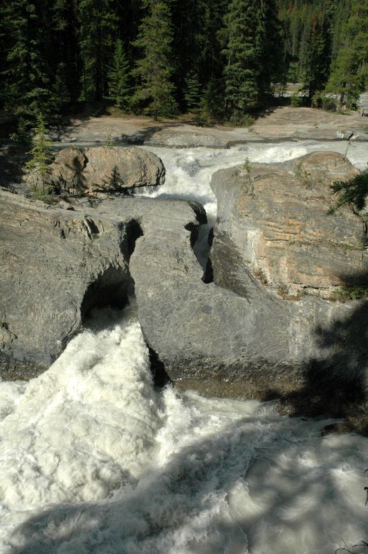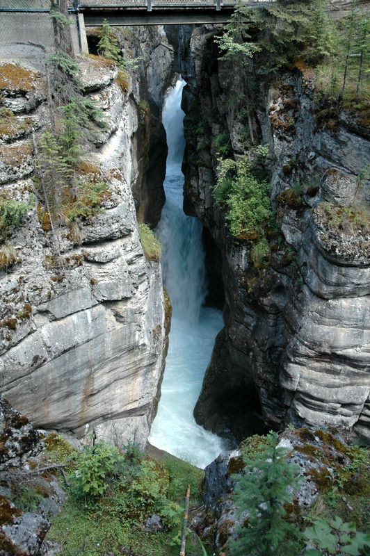 Our other “must see” in Jasper was right up the road at Maligne Canyon. There are six bridges across the canyon; most people start at the most scenic part (the 1st and 2nd bridges) while only the serious hikers go to the 5th or 6th bridges. I split the difference and spent about an hour there, going from the 2nd bridge down to the 4th and then back to the top. Mom walked up from the 2nd to the 1st bridge, so she got to see the best parts. It was quite hot and sunny by then; I would like to go again when the light was different for photography, but it was still enjoyable.