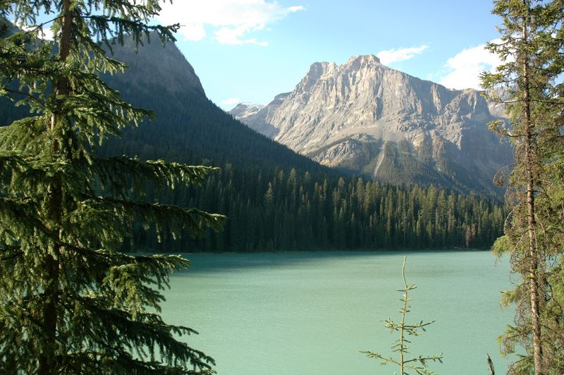 When we got to the end of the Icefields Parkway, we headed west into British Columbia and Yoho National Park. The first overlook there is of the “Spiral Tunnels.” When the Canadian Pacific Railroad built its line through Kicking Horse Pass (where we were), they were saving distance at the expense of a VERY steep grade, which required extra engines to go up and a great risk of runaway trains going down. Eventually they built two spiral tunnels (one through a mountain on each side of the valley, if I understood correctly) to reduce the grade. We got lucky and arrived at the viewpoint when a train was entering the spiral tunnel that was visible there, and we saw it come out and cross over itself! (The freight trains are VERY VERY long there…and when they go through they block access to the tiny town of Field, which is the only community in Yoho.)
